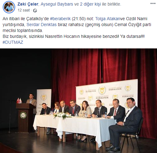 Çeler, " Biz burdayık, sizinkisi Nasrettin Hocanın hikayesine benzedi! Ya dutarsa!!! #DUTMAZ" diye yazdı...
