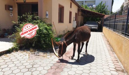 İş insani Ziya Emir, Lefkoşa Köşklüçiftlik’teki evinin bahçesine eşek bağladı.