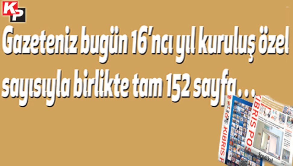 Kıbrıs Postası 16'ncı yaşını kutluyor... Gazeteniz ile birlikte tam 152 sayfa olan Kıbrıs Postası Özel Sayı'sı geride bırakılan bir yılı hatırlatıyor...