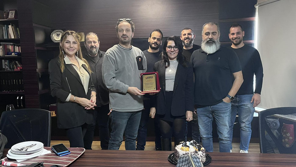 Kıbrıs Postası Haber Müdür Yardımcısı Vatan Mehmet’e kurumda 10. yılını doldurması dolayısıyla plaket takdim edildi.