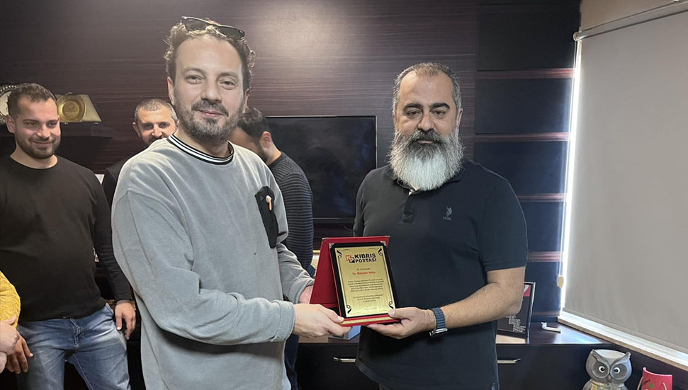 Kıbrıs Postası’nda 10. yılını dolduran Haber Müdür Yardımcısı Vatan Mehmet’e plaket takdim edildi.