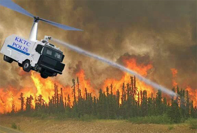 Fotoğrafta Türkiye'deki olaylarda kullanılan bir TOMA aracının üzerine, 'Kıbrıs Türk Belediyeler Birliği' logosu eklenerek bir çemberin sulandığı gösterildi.