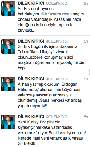 Dilek Kırıcı, Erk'e "Hükümetteki sorunlar ile uğraşın" önerisi de yaparken vatandaşlık yasası ile ilgili neden suskunluk yaşandığını sorguladı...
