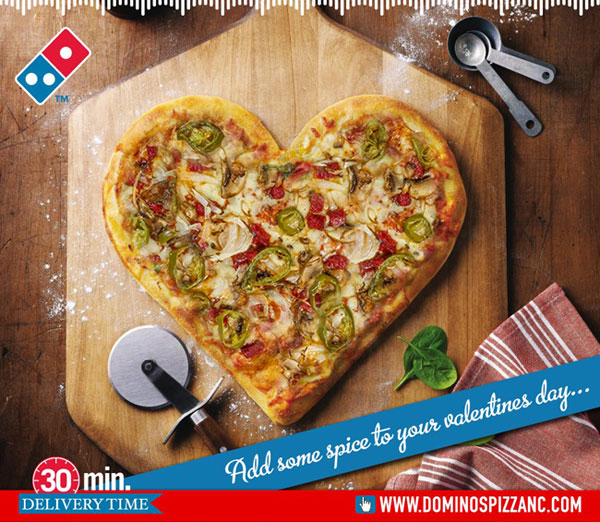 Domino's Pizza, Sevgililer Günü'ne özel kalp şeklinde pizza hazırlıyor. Domino's Pizza Operasyon Müdürü Eda Akdeniz, "Sevdiğinize kalp şeklinde pizza gönderin" uygulamasının sadece Sevgililer Günü'nde geçerli olduğunu, diğer zamanlarda arzu edildiği takdirde de sipariş verilebileceğini belirtti.