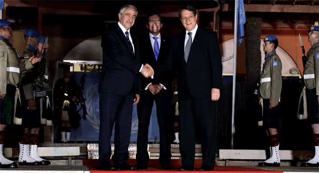 Kuzey Kıbrıs Türk Cumhuriyeti Cumhurbaşkanı Mustafa Akıncı ile Kıbrıs Cumhuriyeti Cumhurbaşkanı Nikos Anastasiadis ara bölgede yemekli bir toplantıda bir araya geldi.