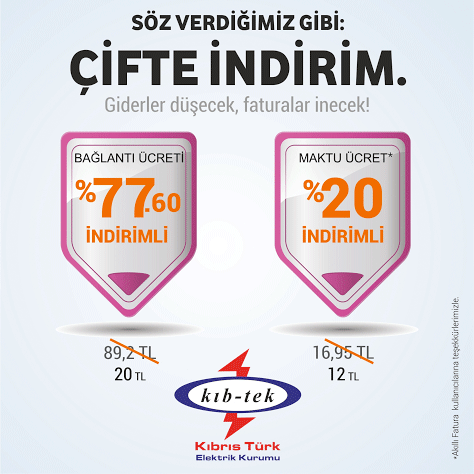 Kıbrıs Türk Elektrik Kurumu, maktu ücret ve sayaç kesme bağlama ücretlerinde indirim yaptı. Güncel teknolojiden yararlanarak maliyetleri düşüren KIB-TEK, bu tasarrufu elektrik faturalarında indirime dönüştürdü.