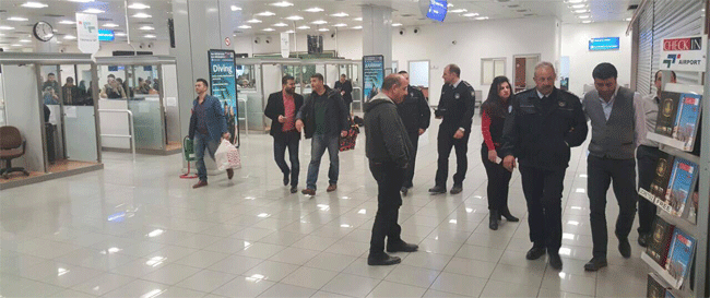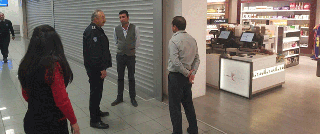 Gümrüksüz Satış Mağazalarının yetkilileri Kaan Kaner, Serhat Kotak, Mehmet Saydam ve diğer yöneticiler polis ve gümrükçülerle görüşmelerini sürdürüyor.