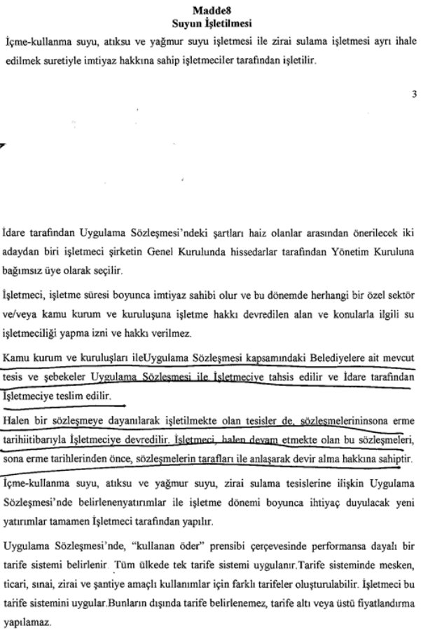Ancak Türkiye ile imzalanan esas anlaşmanın 8. Maddesinin 3. paragrafında yer alan "İşletmeci, işletme süresi boyunca imtiyaz sahibi olur ve bu dönemde herhangi bir özel sektör ve\veya kamu kurum ve kuruluşuna işletme hakkı devredilen alan ve konularla ilgili su işletmeciliği yapma izni ve hakkı vermez" hükmüne göre bu durumun 'anlaşmaya açıkça aykırılık arz ettiği' ifade ediliyor.