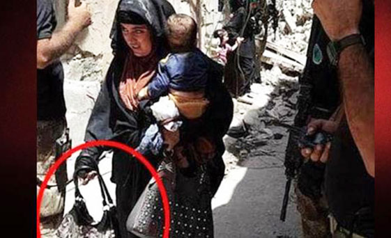 Irak'ın Musul kentinde terör örgütü DEAŞ adına kendisini patlatan bir kadının, patlamadan saniyeler önce çekilmiş bir fotoğrafı yayınlandı.