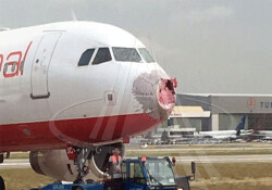 Bakan Dürüst, Ercan-İstanbul uçağına çarpan dolu ve yıldırım nedeniyle uçağın radar sitemi, kokpitin ön camı ile uçağın ön tarafının hasar aldığını söyledi.