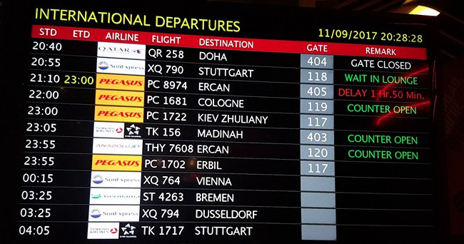 Pegasus Havayolları'nın PC 8974 sefer sayılı Ankara-Ercan ve PC1934 İstanbul-Ercan uçuşuları yine rötara takıldı.