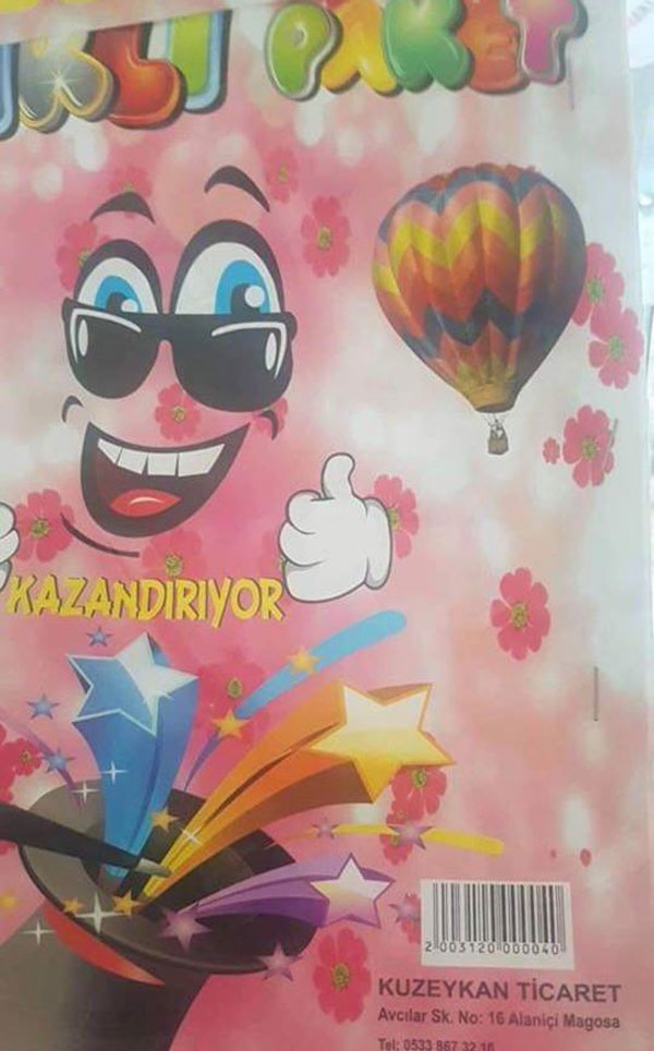 "Bugün her zamanki gibi çocuklarıma sürpriz kutu paketi alıp sevindirmek istedim. Fakat içinden çıkanlardan çok içine koydukları 3 boyutlu yarı çıplak şekilde duran kadının resmini görünce bu ne saçmalık dedim. Çocuklarımızı bunlarla mı sevindiriyoruz? Biz ne kadar sapıkça, ne kadar yanlış gelişmekte olan küçük kız çocuklarının bunları görmesi ne kadar doğru. Ki biz her şeyimize dikkat ediyoruz. Telefonla arayıp söylerken de beyefendi kabul etmeyip yan sanayi yapar gibisinden kendisini ne hikmetse savunmaya çalıştı. Buradan başlayıp ucu nere kadar giderse gideceğim... Şikayetlerime devam edeceğim terbiyesizler KUZEYKAN TİCARET ALANİCİ MAGUSA"