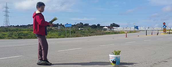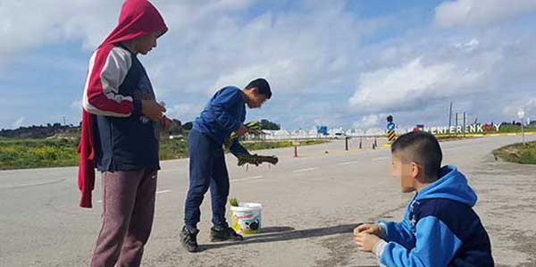 Yol kenarında hem koşturup oynayan hem de geçen araçlara el sallayarak Kıbrıslı Türk ve Kıbrıslı Rum müşterilerine ayrelli satan bu çocukların en büyük hayali ise bilgisayar almak