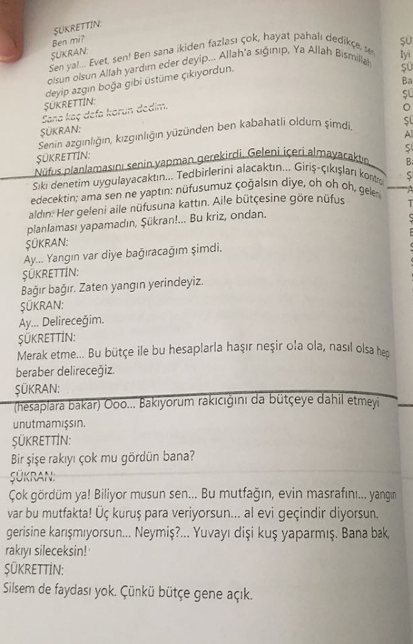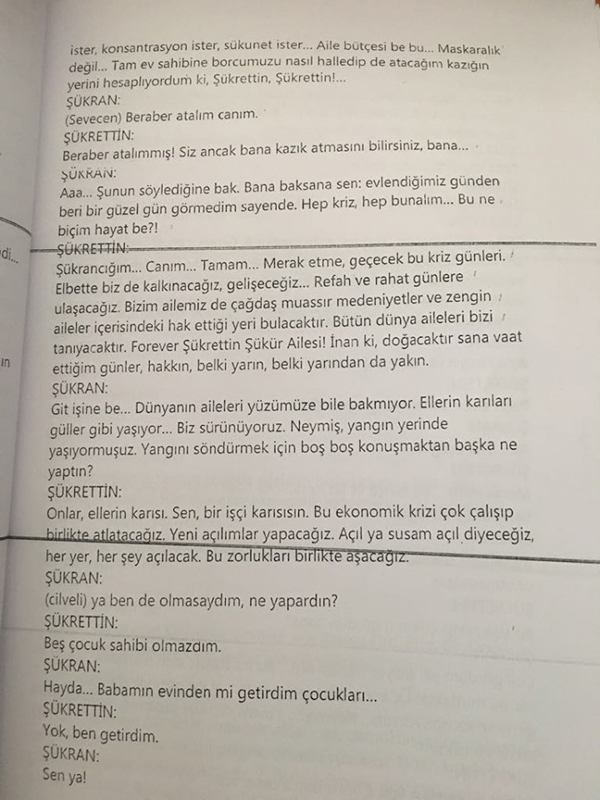 Senaryonun paylaşılan parçasında, 'Şükran' ve 'Şükrettin' isimli bir çiftin ekonomik ve sosyal problemler üzerine tartıştığı gözlemleniyor.