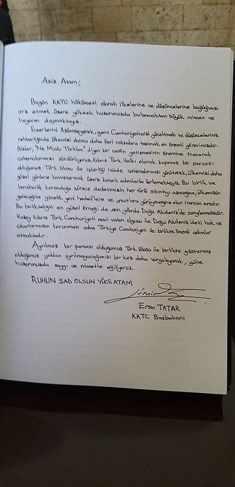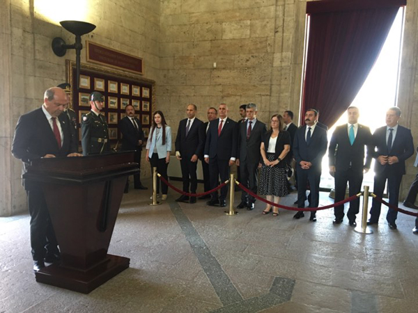 Ankara'da resmi temaslarda bulunan Başbakan Ersin Tatar, Başbakan Yardımcısı Dışişleri Bakanı Kudret Özersay ve Maliye Bakanı Olgun Amcaoğlu, Anıtkabir'i ziyaret etti.