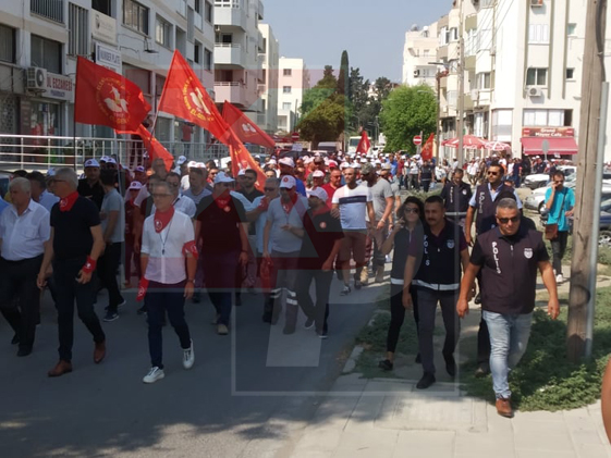 10.25 - Sendikalı KIB-TEK çalışanları ciddi sayıda kalabalıkla Başbakanlık önüne yürüyor.