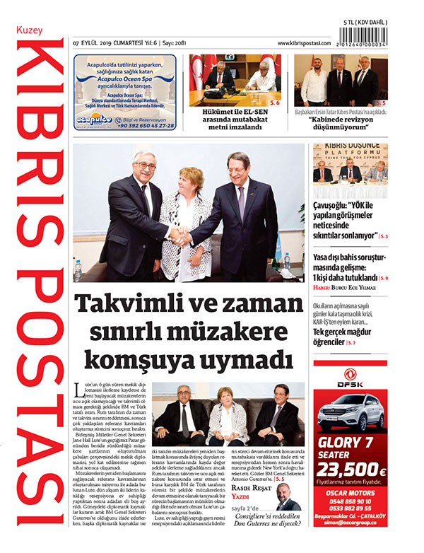 Öte yandan BM Genel Sekreteri Geçici Özel Danışmanı Jane Holl Lute'un dün saat 20.00'de New York'a hareket ermek üzere adadan ayrıldı.