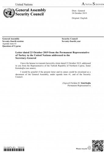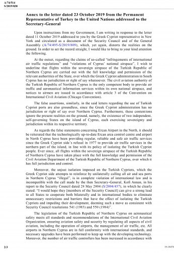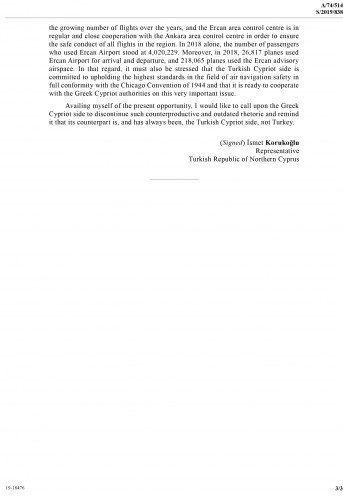 Güney Kıbrıs'ın BM Daimi Temsilcisi ve Başmüzakerecisi Andreas Mavroyannis'in 11 Ekim 2019'da Genel Sekreter Antonio Guterres'e gönderdiği mektupla Türkiye'yi FIR hattı ihlalleri konusunda şikayet etmesinin ardından, KKTC makamlarından cevap geldi.