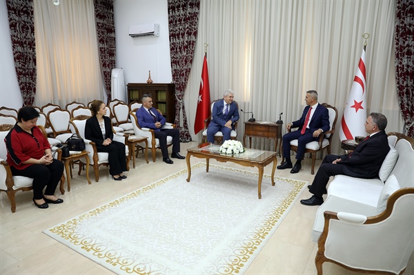 Cumhuriyet Meclisi Başkanı Teberrüken Uluçay, KKTC'nin kuruluş yıldönümü kutlamalarına katılmak amacıyla Meclis'in davetiyle ülkede bulunan, KKTC'de görev yapmış emekli Tuğgeneral Coşkun Kaya ve Albay Murat Dirican'ı kabul etti.