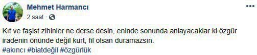 Harmancı, “Kıt ve faşist zihinler ne derse desin, eninde sonunda anlayacaklar ki özgür iradenin önünde değil kurt, fil olsan duramazsın” diye yorum yaptı.