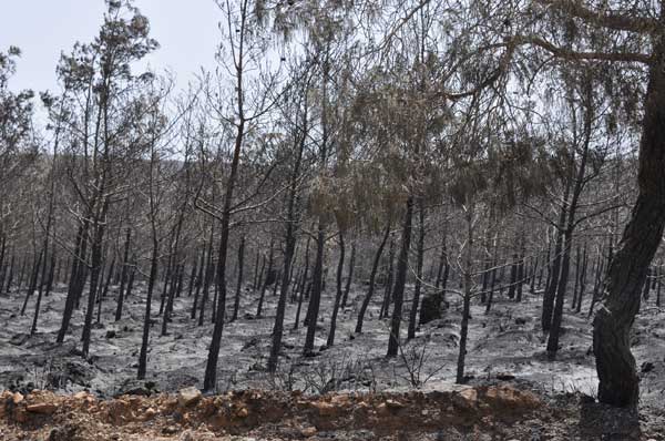Yanan ağaçlar arasında yaşları 500’ün üzerinde olan anıt ağaçlar da bulunduğunu, bazı zeytin ağaçlarına ateşin sulama hortumları ile geldiğini belirten Oğuz, üzerinde anıt ağacı bulunan arazi sahiplerini, arazilerine giderek ağaçlarının altlarını temizlemeye çağırdı.