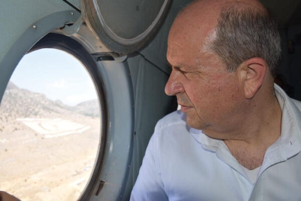 Başbakan Tatar, Bakan Oğuz ve Bakan Pilli, yangın helikopteriyle ülke semalarında incelemelerde bulunuyor...