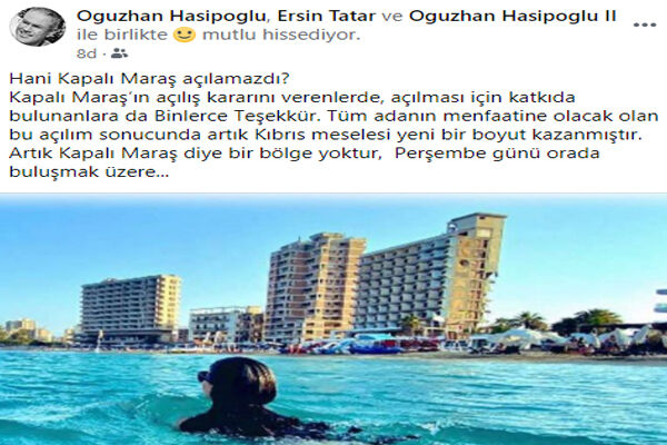 UBP Milletvekili Oğuzhan Hasipoğlu sosyal medya hesabından paylaşımda bulunarak, Kapalı Maraş’ın açılış kararını verenler ve açılması için katkıda bulunanlara teşekkür etti.