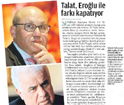 <P><SPAN style="WIDOWS: 2; TEXT-TRANSFORM: none; TEXT-INDENT: 0px; BORDER-COLLAPSE: separate; FONT: medium 'Times New Roman'; WHITE-SPACE: normal; ORPHANS: 2; LETTER-SPACING: normal; COLOR: rgb(0,0,0); WORD-SPACING: 0px; -webkit-border-horizontal-spacing: 0px; -webkit-border-vertical-spacing: 0px; -webkit-text-decorations-in-effect: none; -webkit-text-size-adjust: auto; -webkit-text-stroke-width: 0px" class=Apple-style-span><SPAN style="FONT-FAMILY: Verdana; FONT-SIZE: 13px" class=Apple-style-span>Yapılan saha araştırmalarında seçimin mevcut <STRONG>Cumhurbaşkanı Mehmet Ali Talat</STRONG> ile <STRONG>Başbakan Derviş Eroğlu</STRONG> arasında geçmesi bekleniyor. Anketlere göre, "<STRONG>Ya dün ya dünya</STRONG>" sloganıyla bağımsız aday olan Talat, UBP'nin adayı Eroğlu ile arasındaki farkı kapattı.<SPAN class=Apple-converted-space> </SPAN></SPAN></SPAN></P> <P><SPAN style="WIDOWS: 2; TEXT-TRANSFORM: none; TEXT-INDENT: 0px; BORDER-COLLAPSE: separate; FONT: medium 'Times New Roman'; WHITE-SPACE: normal; ORPHANS: 2; LETTER-SPACING: normal; COLOR: rgb(0,0,0); WORD-SPACING: 0px; -webkit-border-horizontal-spacing: 0px; -webkit-border-vertical-spacing: 0px; -webkit-text-decorations-in-effect: none; -webkit-text-size-adjust: auto; -webkit-text-stroke-width: 0px" class=Apple-style-span><SPAN style="FONT-FAMILY: Verdana; FONT-SIZE: 13px" class=Apple-style-span><SPAN class=Apple-converted-space><STRONG>Zaman Gazetesi</STRONG>'nde yer alan anket Kuzey Kıbrıs'ta yaşanan Cumhurbaşkanlığı sürecine ışık tutuyor.</SPAN></SPAN></SPAN></P>