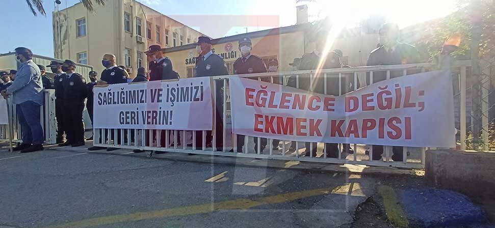 "Mantıksızlığa dur de!" sloganlarıyla yola çıkan eylemciler, Sağlık Bakanlığı önüne "Eğlence değil; ekmek kapısı" yazılı pankarlar da astı.
