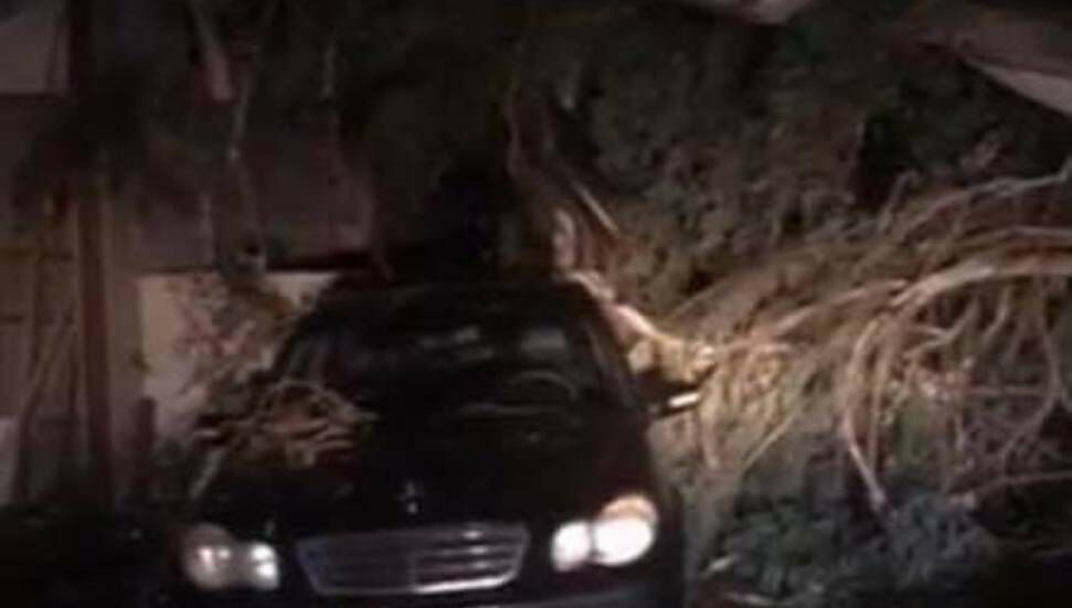 Gemikonağı’nda, bir okaliptüs ağacı şiddetli fırtınanın etkisiyle gürültüyle köklerinden ayrılarak, park halindeki aracın üzerine düştü.