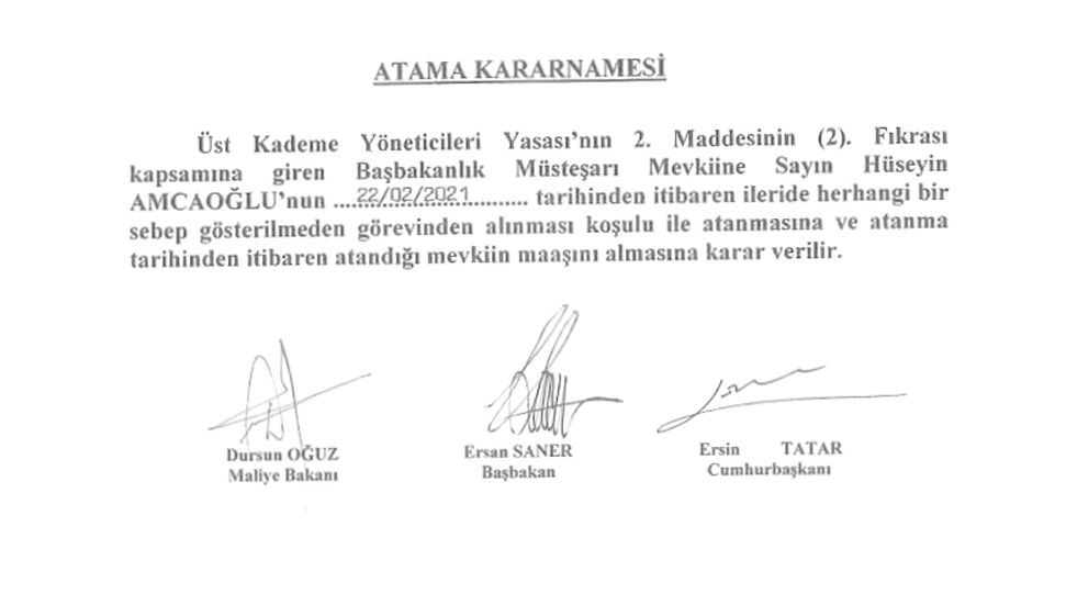 Hüseyin Amcaoğlu, Turizm ve Çevre Bakanlığı Müsteşarlığı görevinden alınarak, Başbakanlık Müsteşarı mevkiine getirildi.