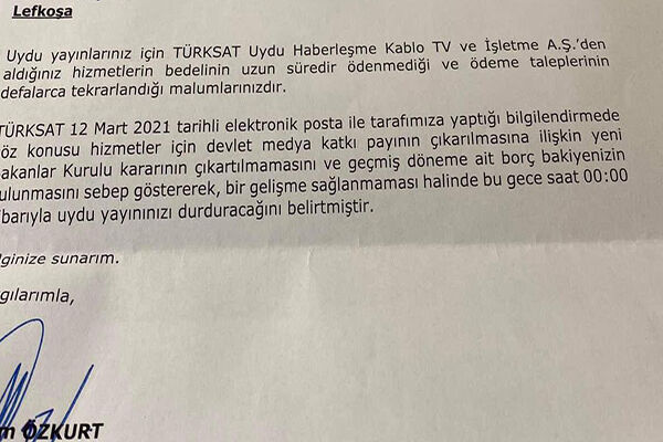 Eğer "hizmet bedeli" birikmiş borç ödenmezse KKTC’de uyduda bulunan TV kanal ve radyoları bu gece yarısı kapanabilir… Kıbrıs Postası’nın edindiği bilgiye göre meseleye ilişkin yeni bir protokol gündemde…