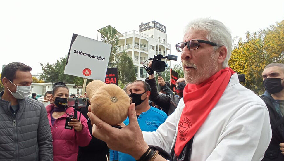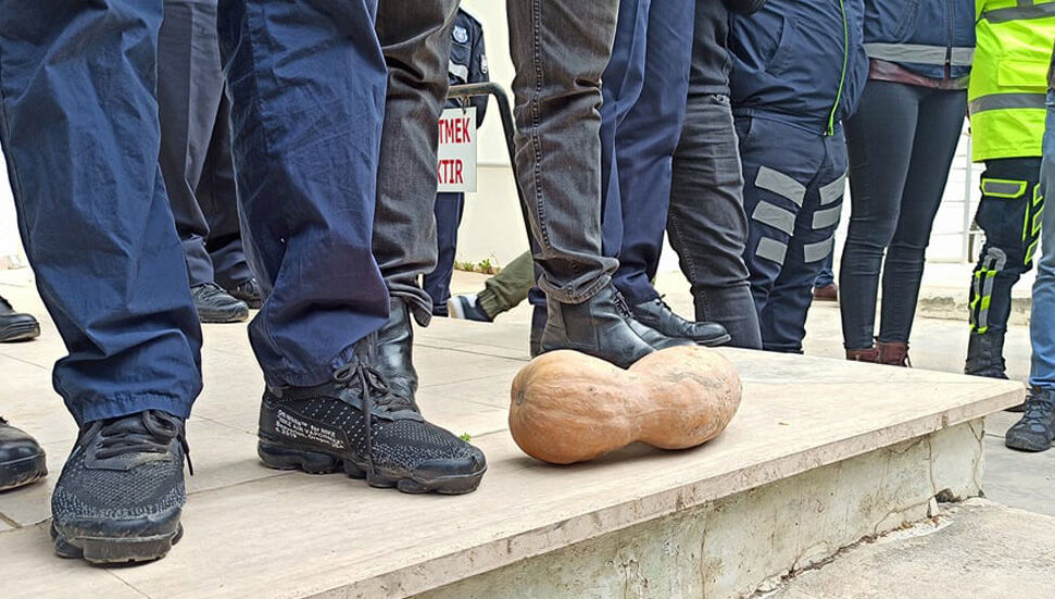 Eylemciler "Kabak kesmesinler" diyerek bakanlığın önüne kabak bıraktılar.