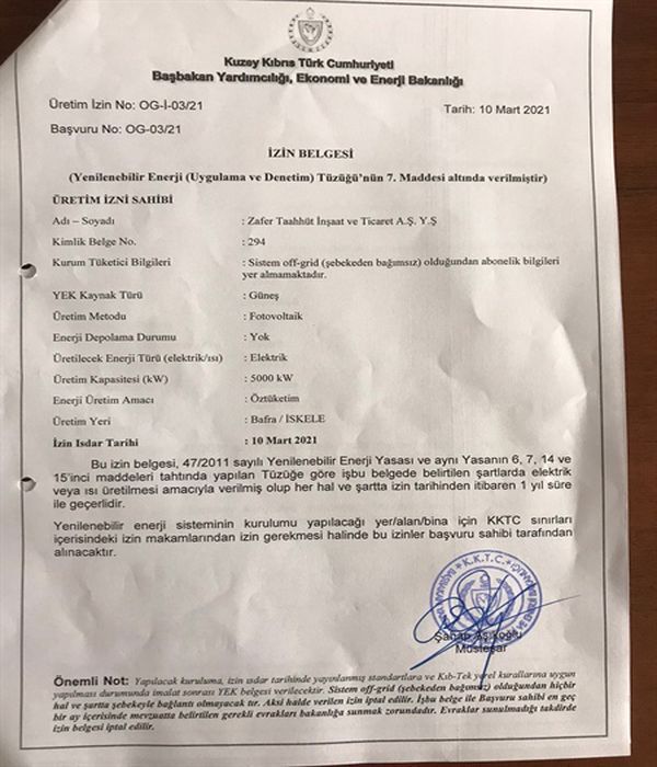 Verilen izin isteyen herkesin alabileceği bir izindir. Sisteme bağlı değildir üstelik Kıb-TEK’ten izin alma gerekmemektedir ve yöntem olarak hem YEK kurulunun hem de bakanlığın hedefidir. Çünkü bu yöntem sisteme ekstra yük getirmeden kurumların enerji sorunlarını çözmektedir.”