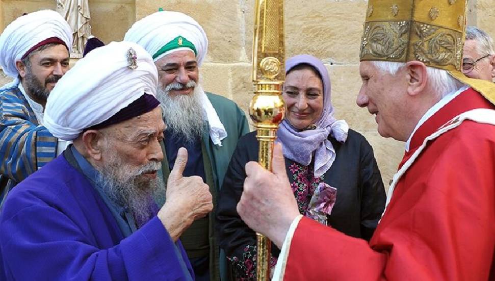 Papa 16. Benediktus, Kıbrıs'ı ziyareti sırasında Şeyh Nazım Kıbrısi ile sürpriz bir görüşme gerçekleştirmişti. O zaman 88 yaşındaki Şeyh Nazım ile görüşme ara bölgedeki “Kutsal Haç Kilisesi”nde (Sainte-Croix katolik Kilisesi) gerçekleştirildi.