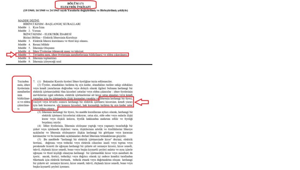 1-) FASIL 171 Elektrik İnkişaf Yasası, 2. Kısım, 7. Maddesinde, “Tayinden Men” bağlığı altında açıkça; “İdarenin herhangi bir üyesi, vasiyet veya tevarüs sonucu herhangi bir elektrik işletmesi hissesine, kendi yararı için hak kazanırsa, söz konusu hisseleri, hak kazandığı tarihten üç aya kadar satar veya elden çıkarır.” demektedir. ATANAMAZ diye bir ibare bulunmamaktadır. BİLMİYORSANIZ yasalara bakar ÖĞRENİRSİNİZ.