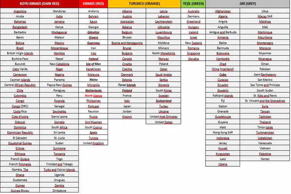 Üst Komite kararlarına göre, ülke renkleri güncellendi ve 2 Ağustos’tan itibaren bu renk kodları uygulanacak.