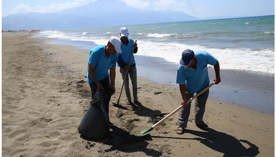 Suriye kaynaklı petrol sızıntısı temizlik çalışmaları Hatay açıklarında sürüyor