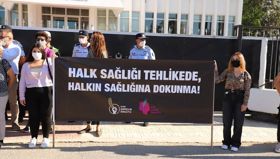 CTP Basın Bürosu’ndan verilen bilgiye göre, eyleme katılanlar, halk sağlığının tehlikeye atıldığını öne sürerek, hükümeti pankartlarla istifaya davet etti.