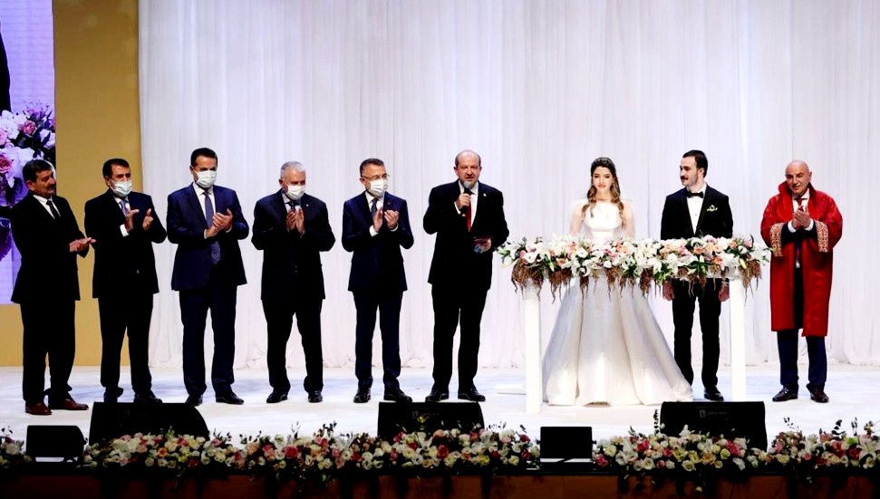 Ankara Ticaret Odası Konferans Salonu’nda düzenlenen nikah törenine KKTC Cumhurbaşkanı Ersin Tatar’ın yanı sıra, TC Cumhurbaşkanı Yardımcısı Fuat Oktay, Ak Parti İzmir Milletvekili Binali Yıldırım, AK Parti İlçe Başkanı Mustafa Toklu, Alanyaspor Başkanı Hasan Çavuşoğlu ve çok sayıda davetli katıldı.