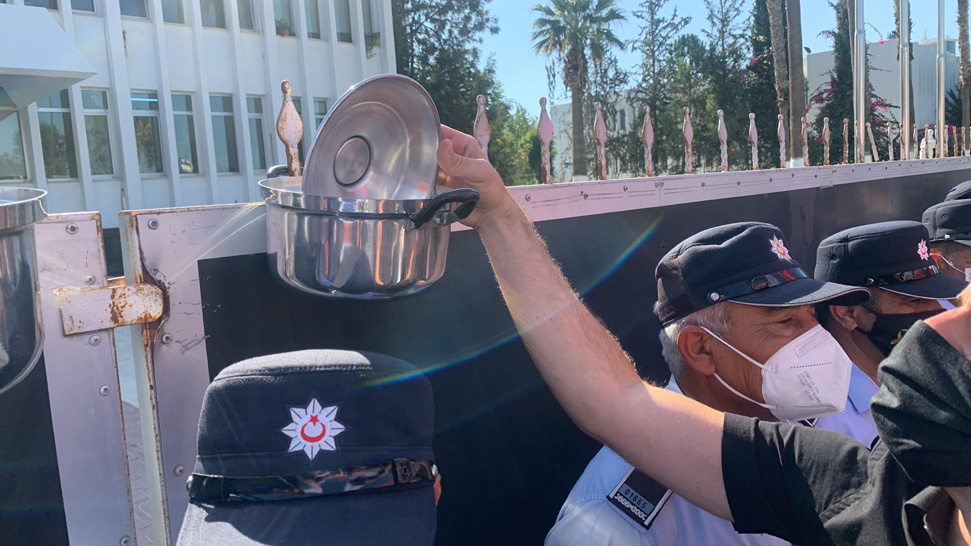 3 sendika zamları protesto etmek için Başbakanlık önünde 'tencereli' eylem yaptı.