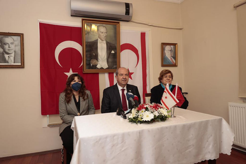 Cumhurbaşkanı Tatar; “Kıbrıs’ta biz de bir uzlaşma, anlaşma istiyoruz. Her iki halkın da menfaati, her iki halkın da geleceği için Kıbrıs’ta kabul edilebilir, adil, kalıcı, sürdürülebilir kapsamlı ve herkesin mutlu olabileceği hem Kıbrıs içerisinde, hem de bölgenin istikrarı için, dengelerin oluşabilmesi için Doğu Akdeniz’deki yeni etkenlerin daha dengede olabilmesi için yan yana yaşayan iki devlet bütün bu meselelere cevap olacaktır. Onun için mücadele veriyoruz. Kıbrıs’ta bu temelde bir uzlaşı istiyoruz” şeklinde konuştu.