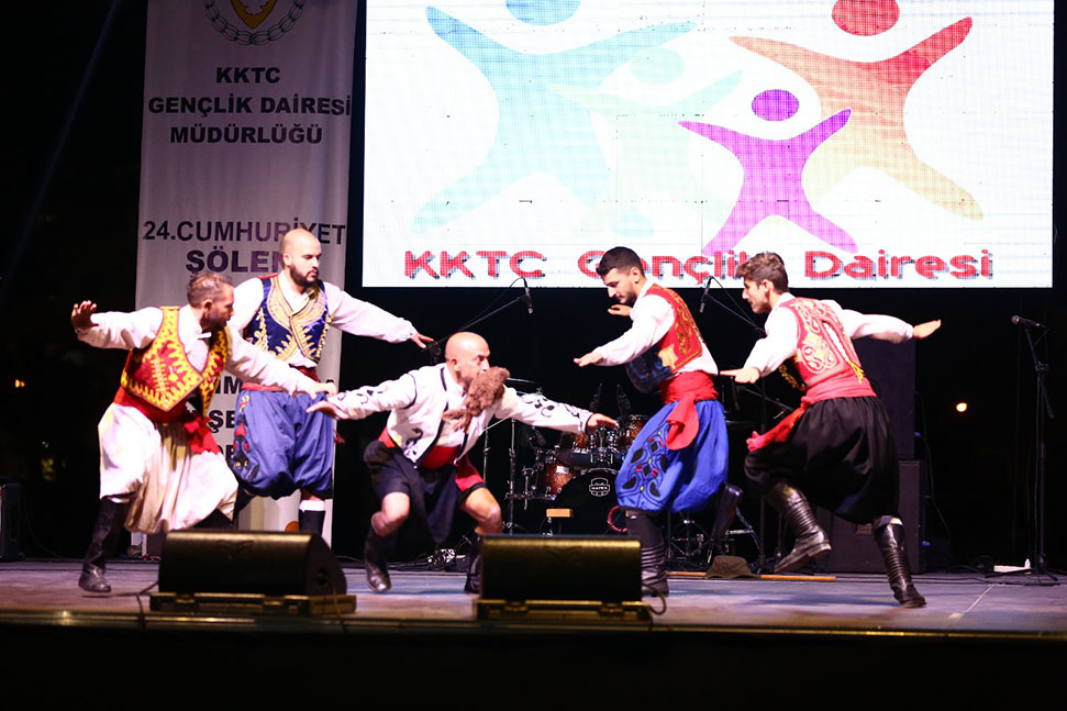 Gençlik Dairesi 24. Cumhuriyet Şöleni Bostancı Şehit Karter İlkokulunda gerçekleşen açılış şöleninden sonra dün akşam Lefkoşa Atatürk Kapalı spor Salonu açık alanında gerçekleşen şölenle devam etti.