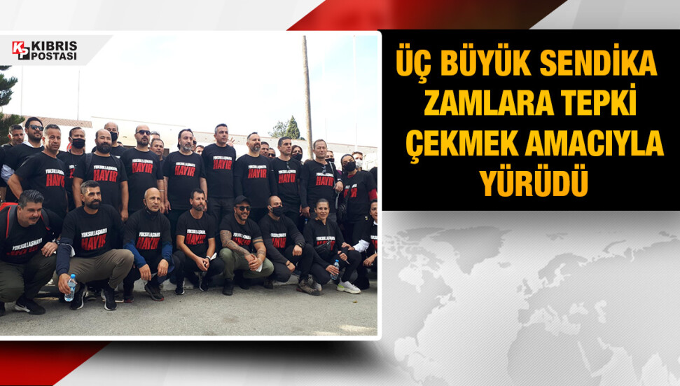 Ülkenin üç büyük sendikası; KTAMS, KAMUSEN ve KAMU-İŞ Yönetim Kurullarından toplamda 60 kişi, zamlara tepki göstermek adına Girne boğazından Cumhuriyet Meclisi’ne yürüdü.
