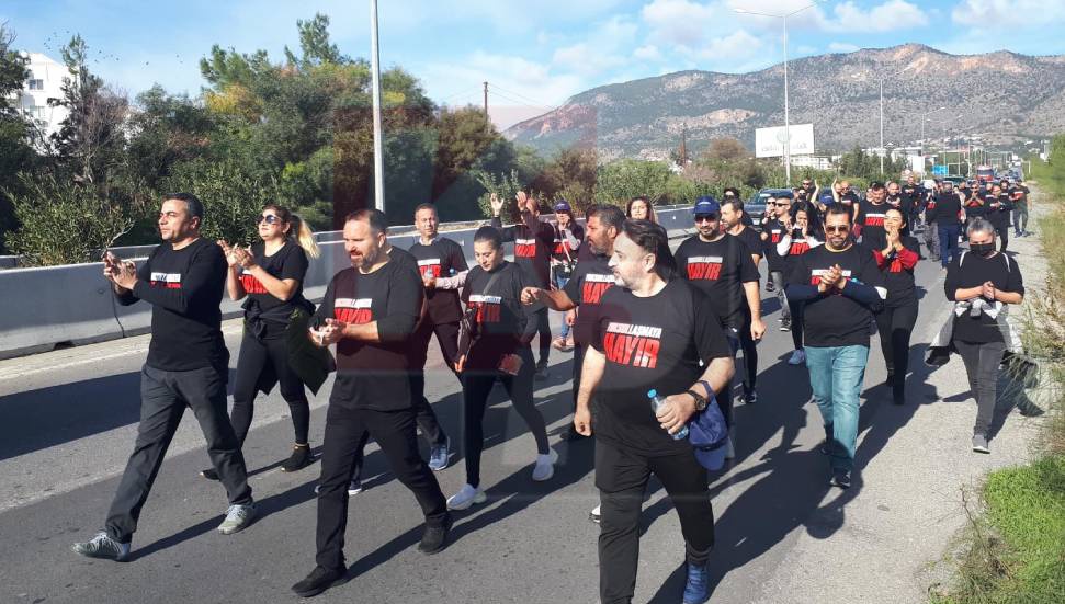 Kamu İşçileri Sendikası (Kamu-İş), Kıbrıs Türk Amme Memurları Sendikası (KTAMS) ve Kıbrıs Türk Kamu Görevlileri Sendikası’nın (Kamu-Sen) yönetim kurulları düzeyinde yapılan yürüyüş, “Yoksullaşmaya Hayır” sloganıyla gerçekleştirildi.