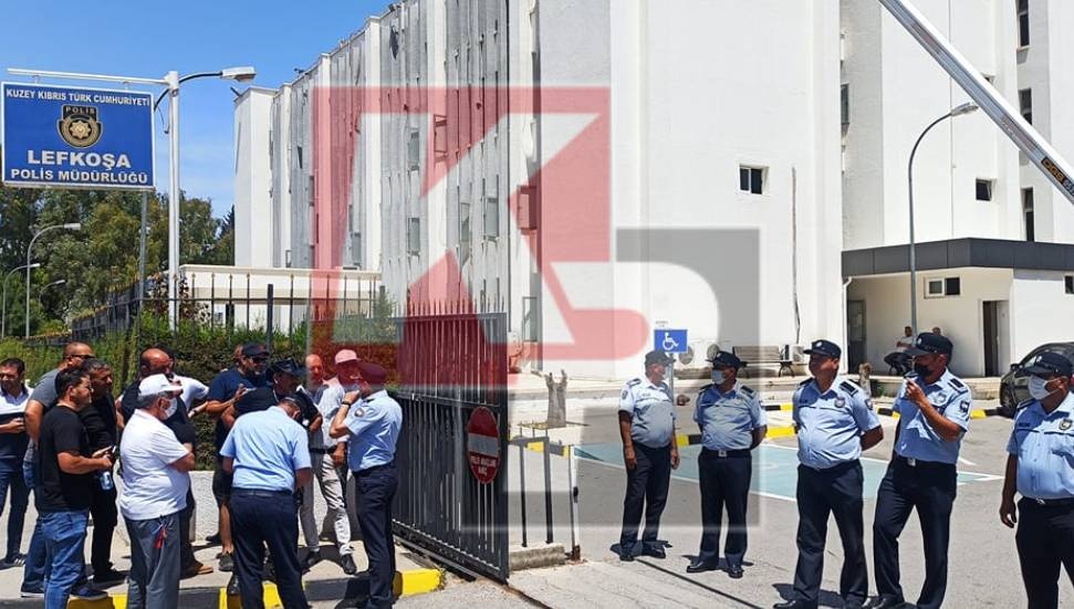 Hayvancılar Birliği'nin şok eyleminde Cumhurbaşkanlığı ve SÜTEK’in önünde Birlik Başkanı Mustafa Naimoğulları’nın da dahil toplamda 6 kişinin tutuklanması üzerine eylemciler Lefkoşa Polis Müdürlüğü önünde toplandı.