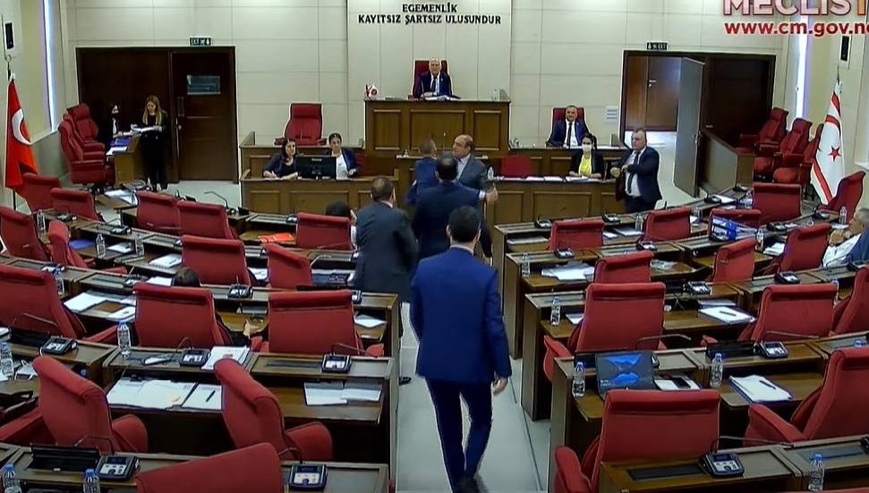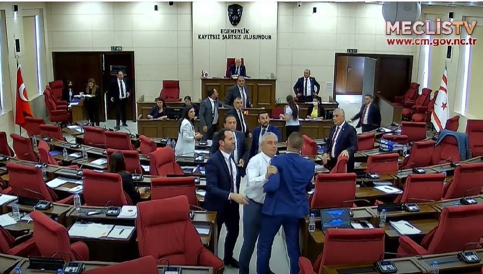 CTP Milletvekili Devrim Barçın, güvenoyu sırasında Meclis TV’de gösterilmeyen ‘hayır’ tişörtünü kürsüye koyması sonrası, UBP Milletvekili Emrah Yeşilırmak tepki gösterdi. Yeşilırmak, kürsüde konuşan Barçın'ın üzerine yürüdü; araya diğer milletvekilleri girdi.