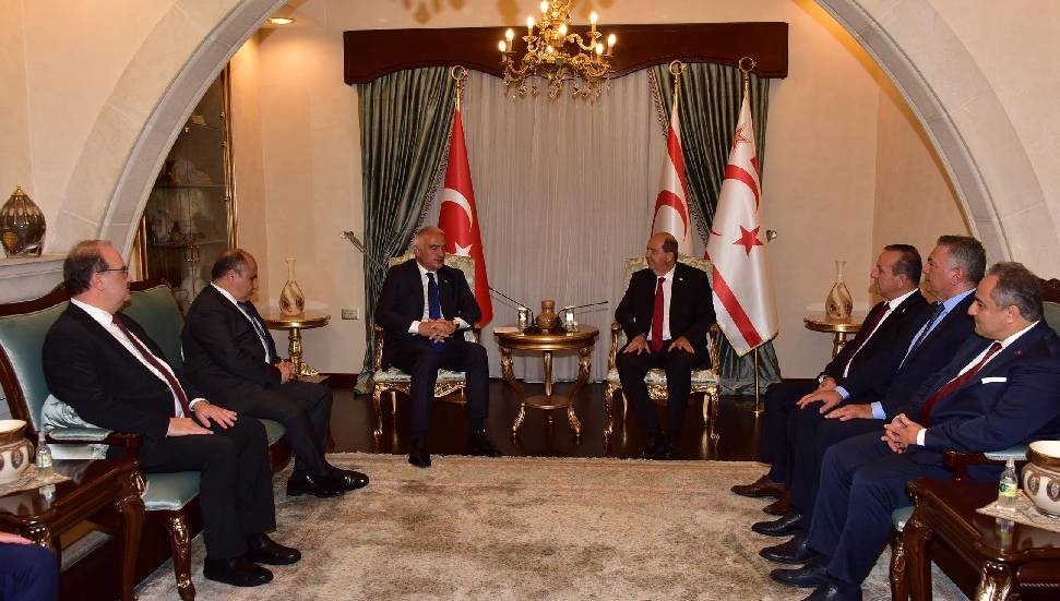 Cumhurbaşkanlığında saat 15.00'te gerçekleşen görüşmede TC Lefkoşa Büyükelçisi Ali Murat Başçeri ve Turizm, Kültür, Gençlik ve Çevre Bakanı Fikri Ataoğlu da hazır bulundu.
