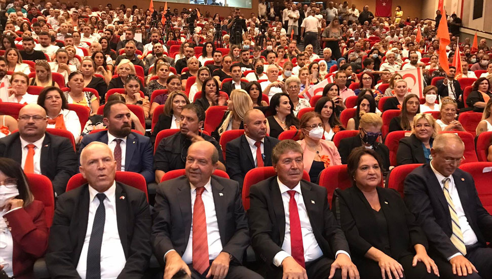UBP Olağanüstü Kurultayı bir saat gecikmeli bir şekilde saat 11.00’de Yakındoğu Üniversitesi – Atatürk Kültür ve Kongre Merkezi’nde başladı.