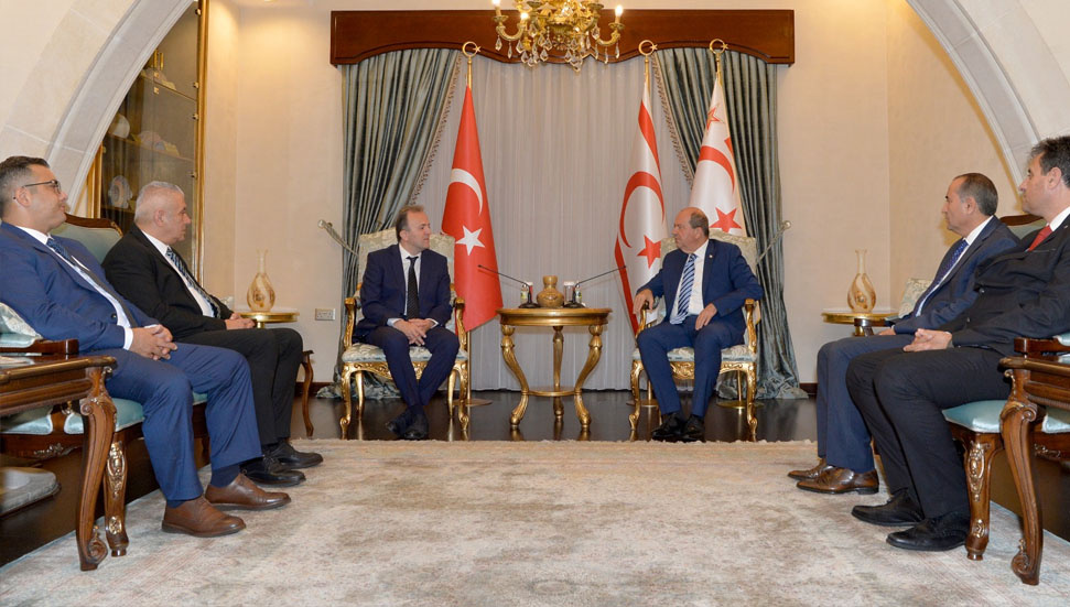 Cumhurbaşkanı Ersin Tatar, Türkiye Cumhuriyeti Aile ve Sosyal Hizmetler Bakan Yardımcısı Rıdvan Duran ve beraberindekileri kabul etti.
